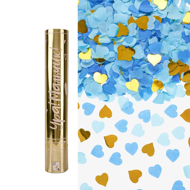 Хлопушка Бумфети 30см Ура Мальчик! Сердца Голубой/Золото 723006