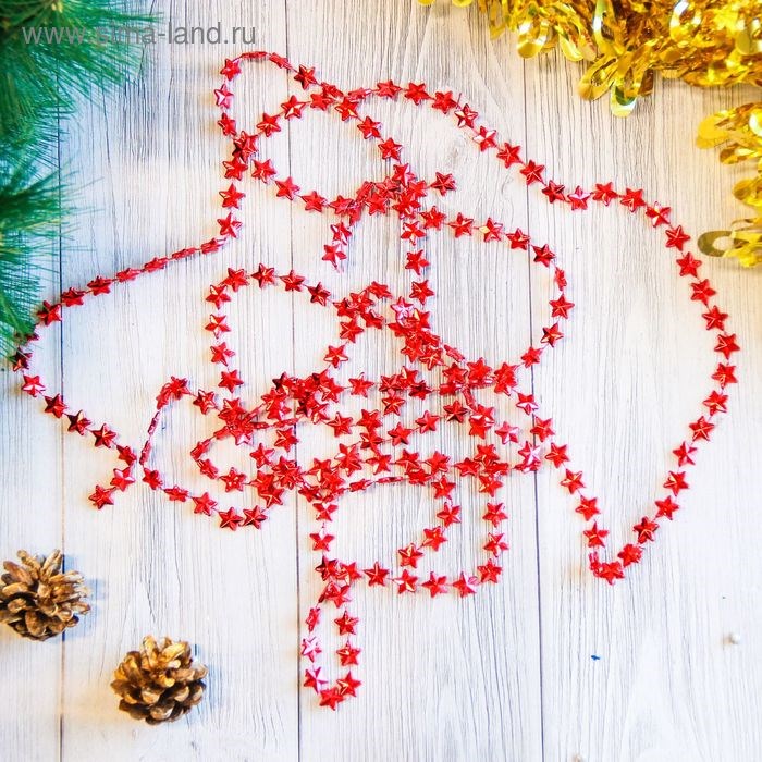 Бусы на елку 2,7м Звезды красные d-9мм 2371381