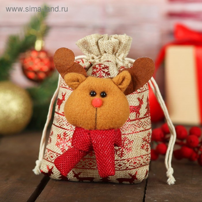 Мешок для подарков Новый год на завязках с орнаментом вместимость 200гр 3303166