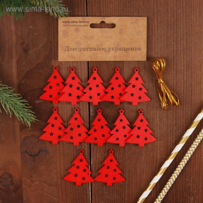 Бусы на елку 2,7м Звезды красные d-9мм 2371381