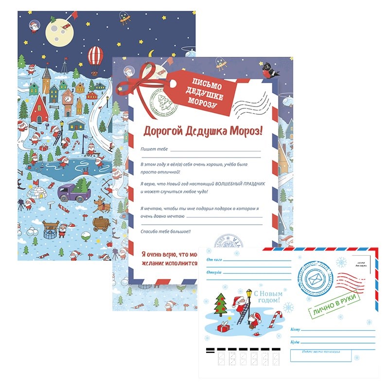Письмо Деду Морозу А4 c цветным конвертом письмо - 1 шт конверт -1 шт