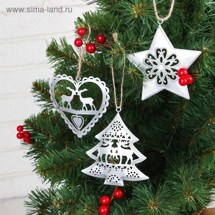 Подвеска металлическая Новогодние чудеса серебро 3567205