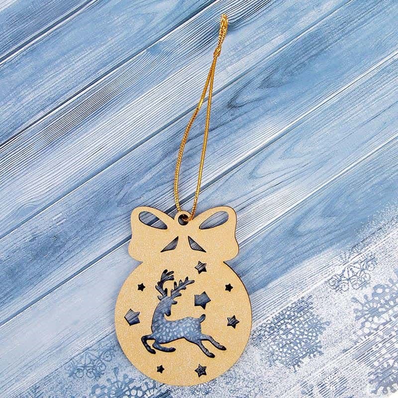 Подвеска на елку Шар с бантом олень золото 7*9,2см 2895112