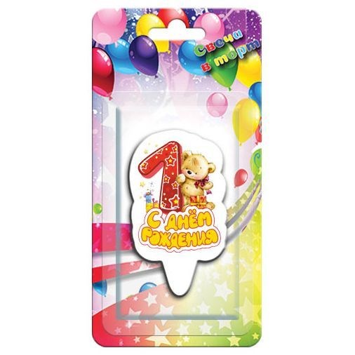 Свеча Надпись С Днем Рождения! Цифра 1 Мишка Красная