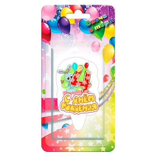 Свеча Надпись С Днем Рождения! Цифра 4 Зайчик