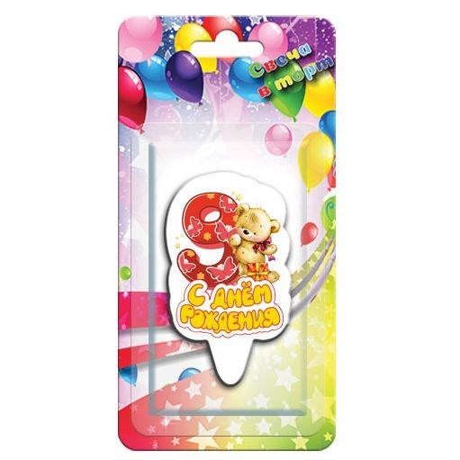 Свеча Надпись С Днем Рождения! Цифра 9 Мишка Красная