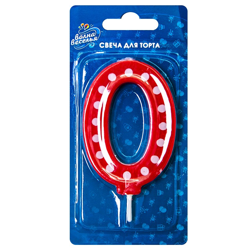 Свеча Цифра 0 Красная в белую точку 7,5см