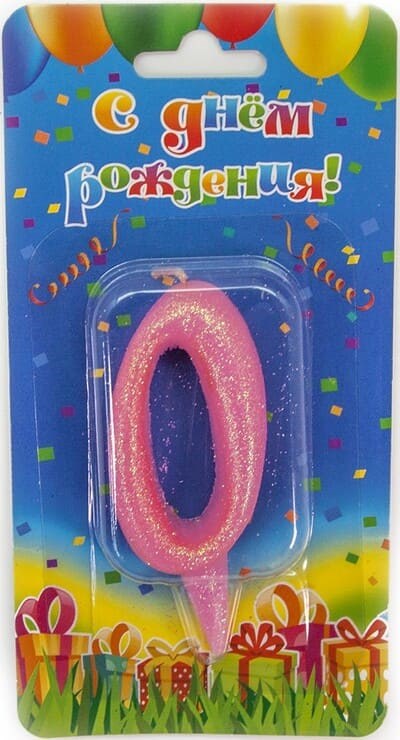 Свеча Цифра 0 Овал Розовый с блестками 7см