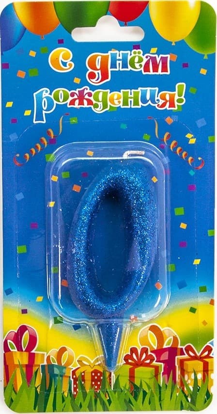 Свеча Цифра 0 Овал Синий с блестками 8см