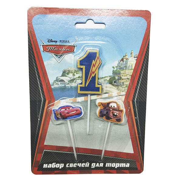 Свеча Цифра 1 + 2 свечи Тачки на шпажках