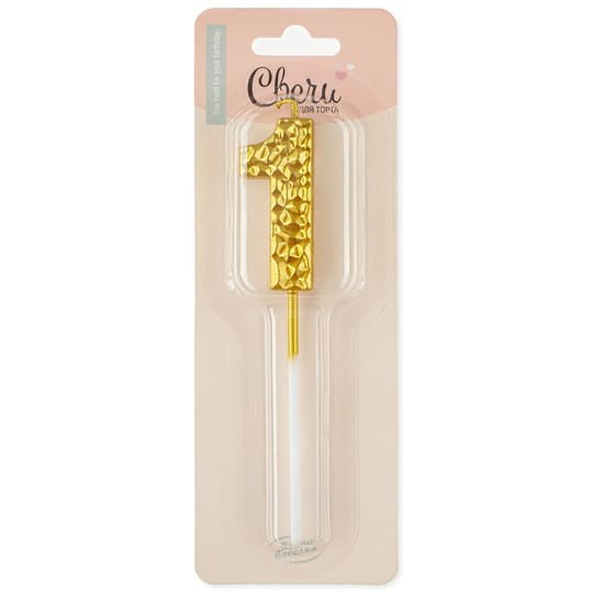 Свеча Цифра 1 Кристалл Золото Металлик 3,5*4,5 + 7 см с держат.