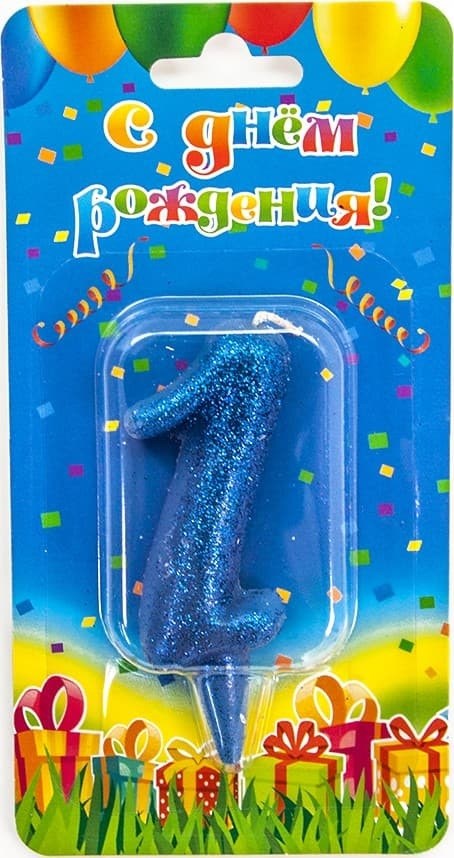 Свеча Цифра 1 Овал Синий с блестками 8см