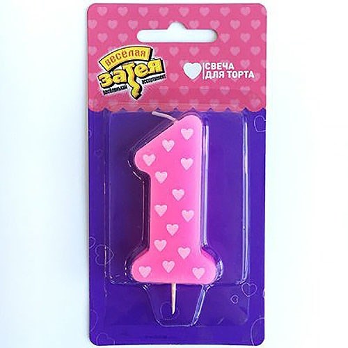 Свеча Цифра 1 Розовая в сердечко 1502-2403