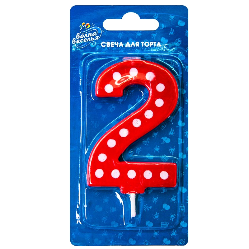 Свеча Цифра 2 Красная в белую точку 7,5см