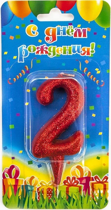 Свеча Цифра 2 Овал Красный с блестками 8см