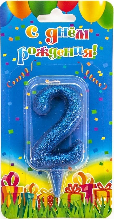 Свеча Цифра 2 Овал Синий с блестками 8см