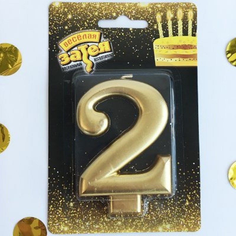 Свеча Цифра 2 Золотая 8см 1502-2835