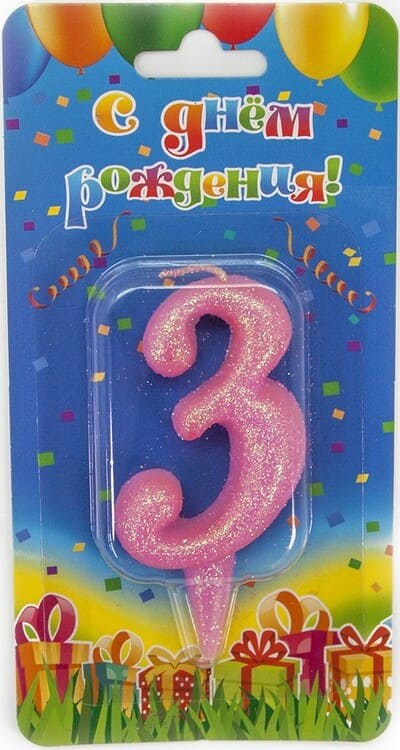 Свеча Цифра 3 Овал Розовый с блестками 7см
