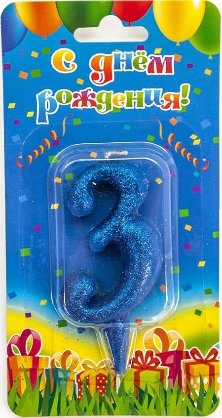 Свеча Цифра 3 Овал Синий с блестками 8см
