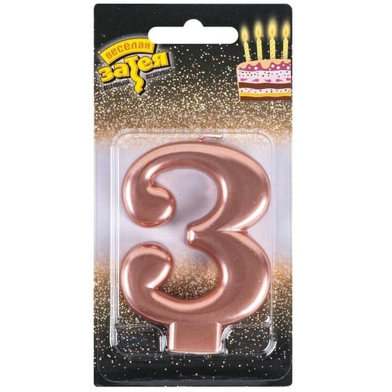 Свеча Цифра 3 Розовое золото 8см