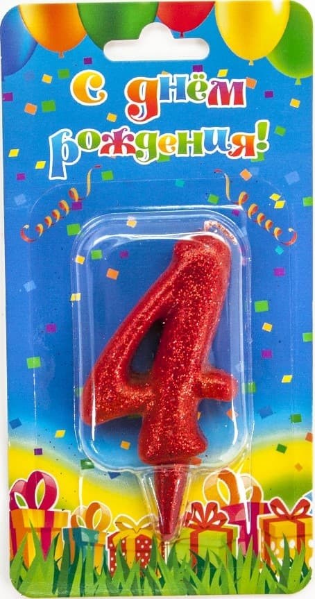 Свеча Цифра 4 Овал Красный с блестками 8см