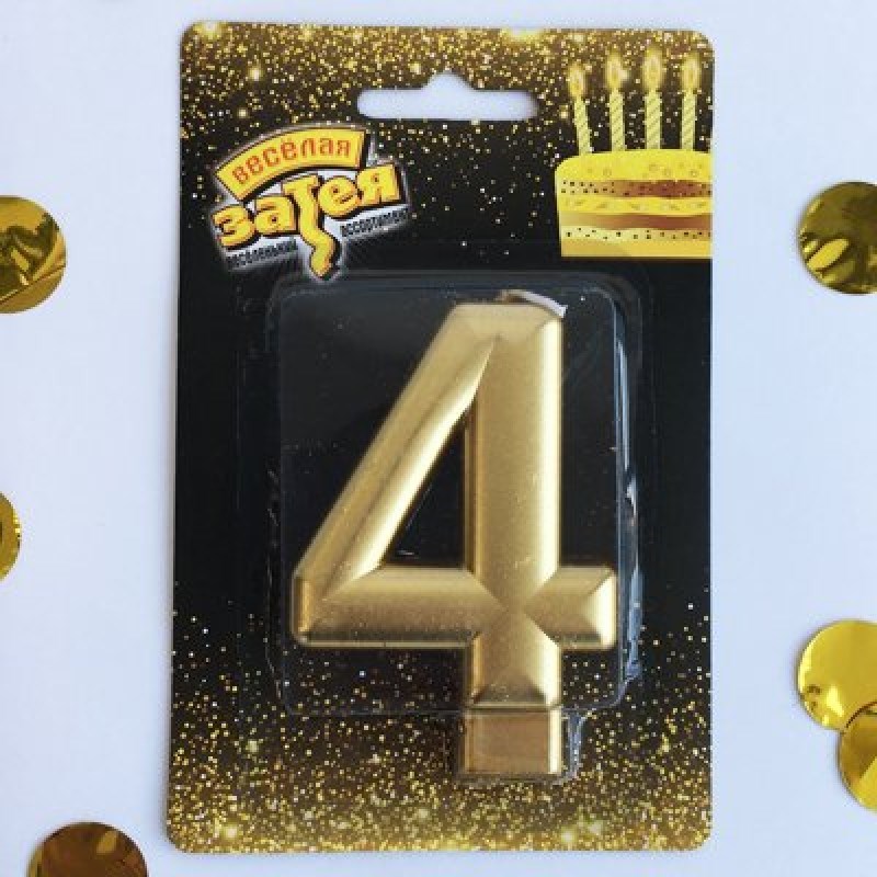 Свеча Цифра 4 Золотая 8см 1502-2837