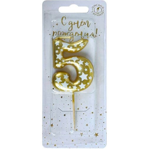 Свеча Цифра 5 Звездочки Золото 4,3 см