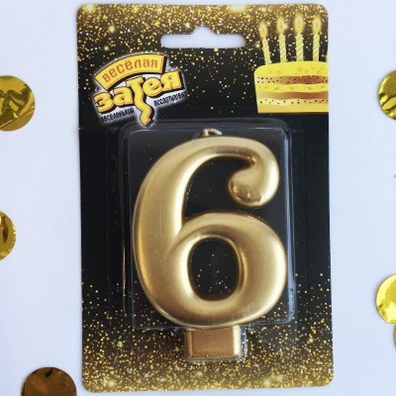 Свеча Цифра 6 Золотая 8см 1502-2839