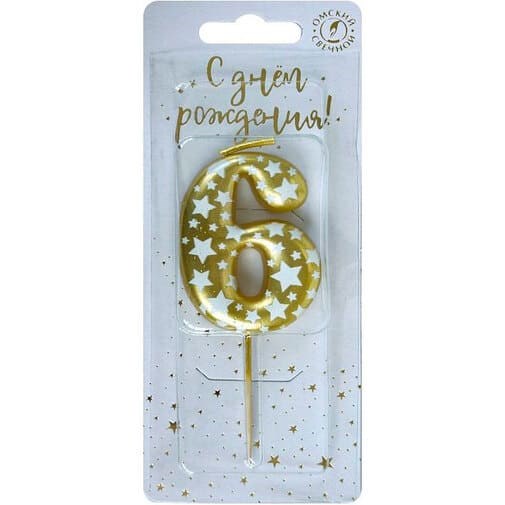 Свеча Цифра 6 Звездочки Золото 4,3 см
