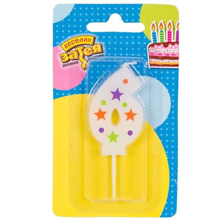 Свеча Цифра 6 Звезды 5см