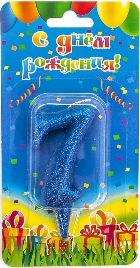 Свеча Цифра 7 Овал Синий с блестками 8см