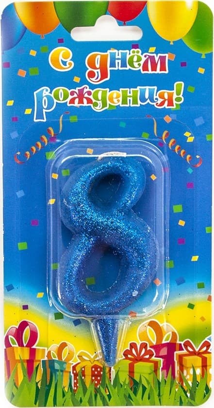 Свеча Цифра 8 Овал Синий с блестками 8см