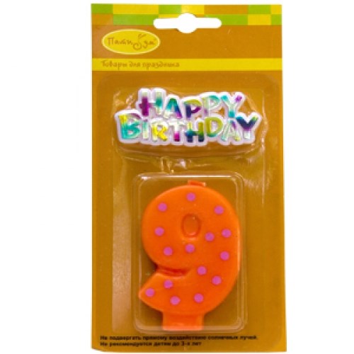 Свеча Цифра 9 Оранжевая в точку