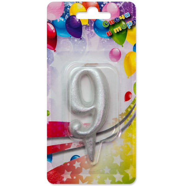 Свеча Цифра 9 Серебро 8см