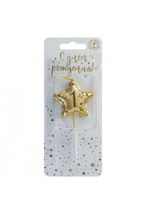 Свеча Цифра 2 Звездочки Золото 4,3 см