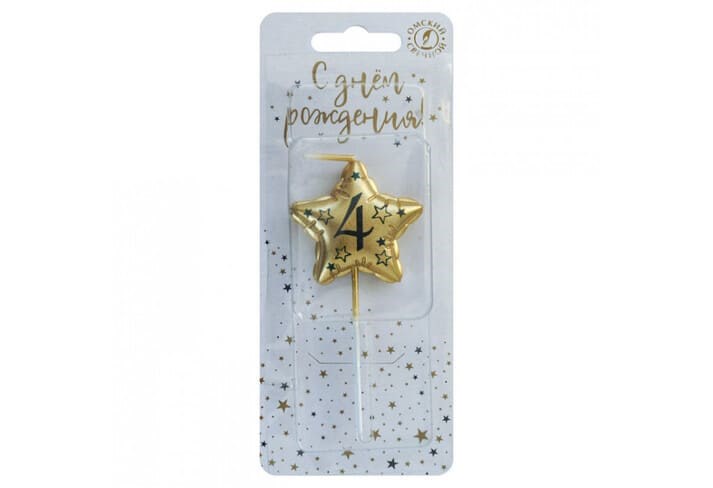Свеча Звезда 4 Золото Металлик 9 см