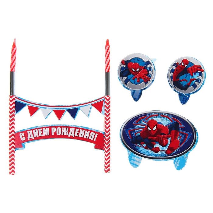 Свечи 2шт + топперы С днем рождения! Человек-паук 1496893