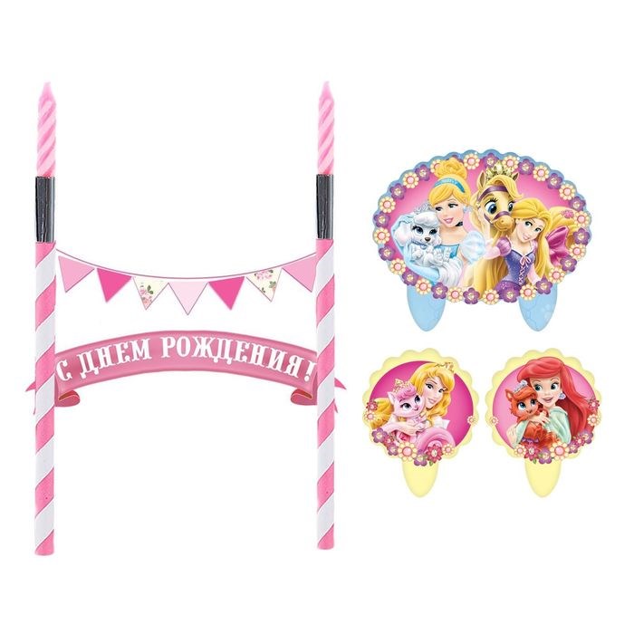 Свечи 2шт + топперы С днем рождения! Принцессы 1496878