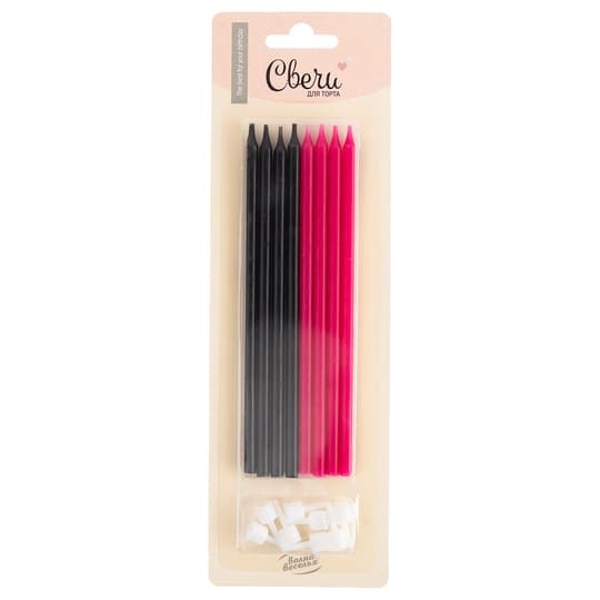 Свечи Черный/Фуше 0,55*14,5 + 1 см 8 шт. с держат.