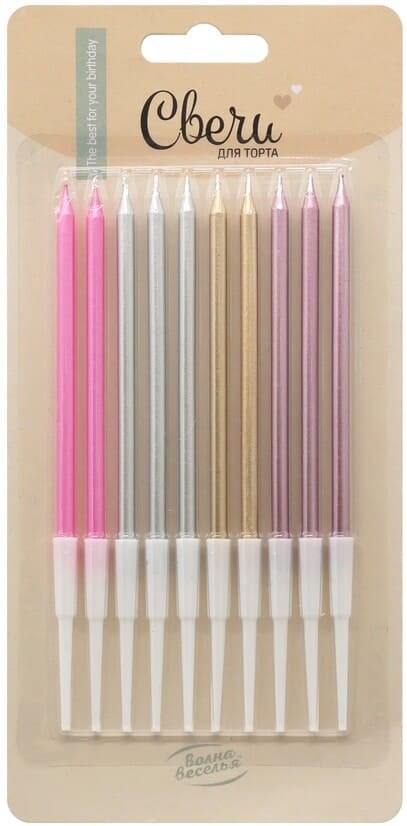 Свечи Элегантная серия Ассорти Металлик 0,5*10,5 + 5 см 10 шт. с держат.