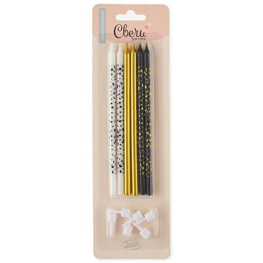 Свечи Модный микс Ассорти Металлик 0,5*12,5 + 2 см 6 шт. с держат.