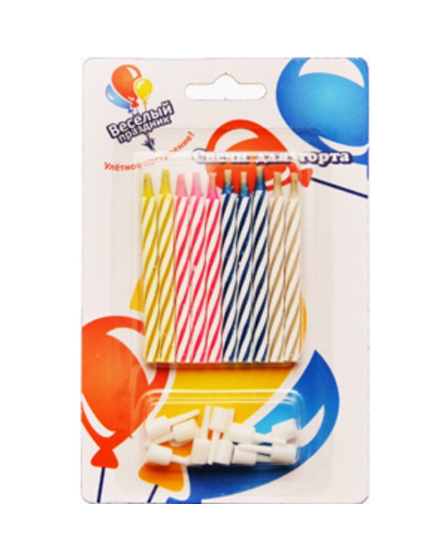 Свечи Голубой микс 8 см 6 шт. с держат.