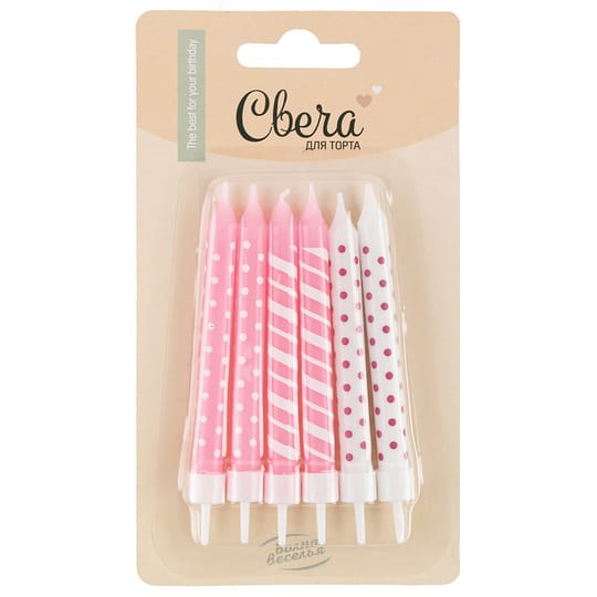 Свечи Розовый микс 8 см 6 шт. с держат.