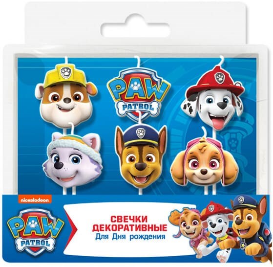 Свечи Щенячий Патруль 6,5 см 6 шт.