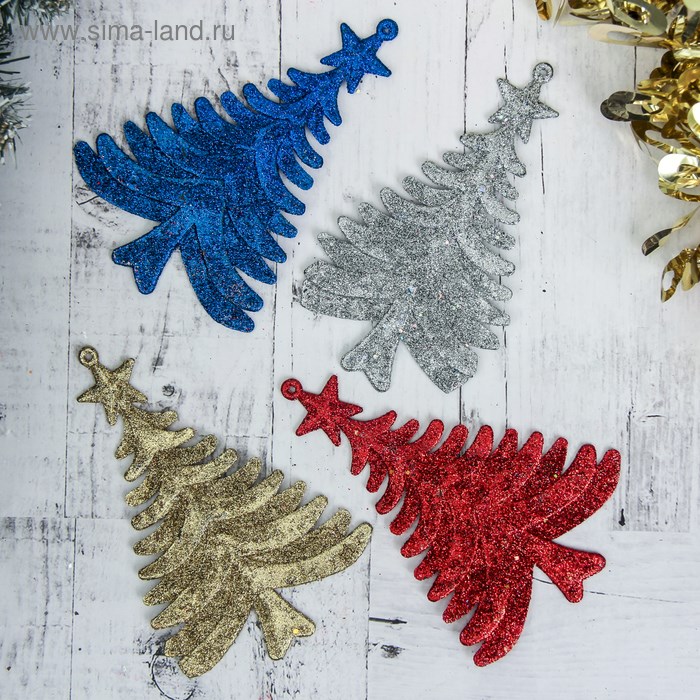 Украшение ёлочное Елка со звездой блеск 4шт 10*13см 3570493