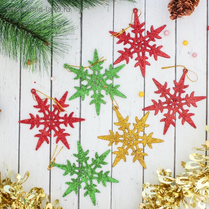 Украшение елочное Острые снежинки 6шт 10*10см микс 3566181