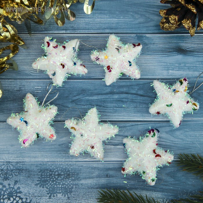 Украшение елочное Звездочки пушистые блеск 6шт 4,5*4,5см 3570513