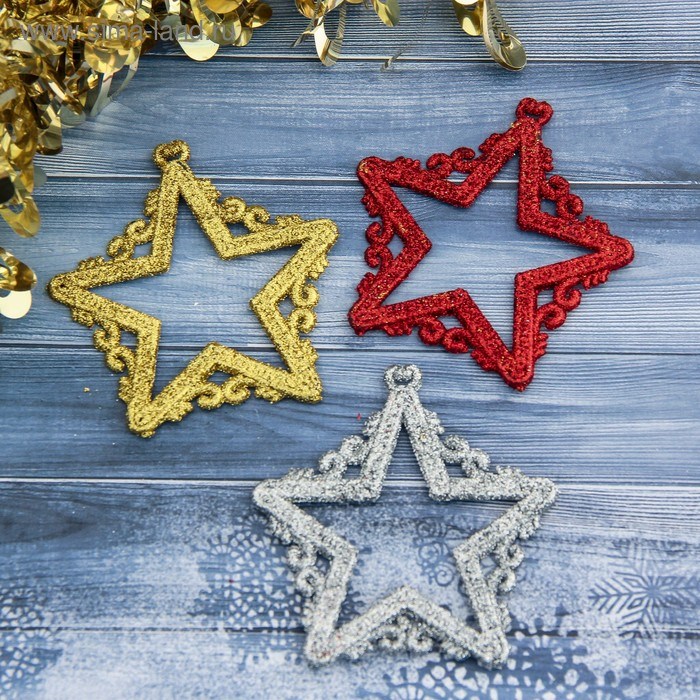Украшение елочное Звездочки с завитками 3шт 7,5*7,5см микс 3556991